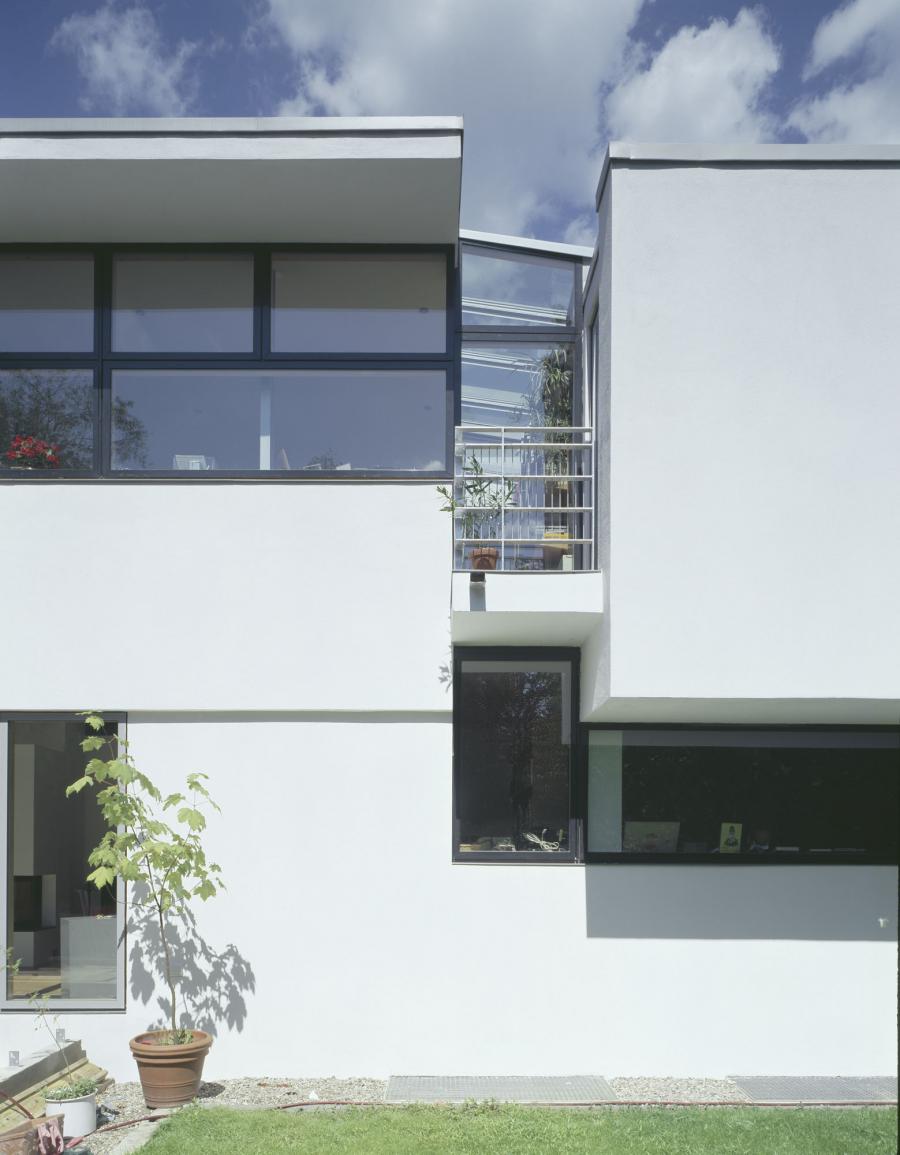 Der Kontrast zur Glorifizierung der Historie durch Übernahme ihrer Formen und Dekorationen bei Hans Kollhoff ist nicht krasser vorstellbar als in der räumlichen und sozialen Qualität der »Formlosigkeit« bei Carsten Roth. Aus dem statischen Objekt Haus entsteht mit dem Haus Thiede ein dynamisches Gefiüge – ohne komplizierte Details und dekonstruktivistische Verrenkungen. »Leben spielt nie, sprießt nie in einem Vakuum oder in einem Ornament, wie Hans Poelzig Mies van der Rohe vorhielt, sondern in einer irgendwie balancierten, obwohl sich dauernd wandelnden Fülle von Beziehungen. Ökologie nennen die Wissenschaftler dieses beziehungsreiche Gleichgewicht zwischen Lebewesen und seiner Umgebung.« Mit diesen Worten führte Richard Neutra den durch seinen Bauherrn Philip Lovell, einen Naturtherapeuten, mitgeprägten Begriff »Biorealismus« ein, zwanzig Jahre vor der Energiekrise. Neutra betrieb die Auflösung des Raumes, sein Hauptthema, mithilfe von in den Eckpunkten stumpf gestoßenen Glasscheiben, mit Tragbalken, die wie Spinnenbeine vor die Fassade springen, mit Dachvorsprüngen, die in der Gegenrichtung auskragen, mit spiegelnden Wasserflächen unmittelbar an der Fassade. Carsten Roth arbeitet dagegen viel intensiver mit dem Baukörper, mit Schichtungen, Ausbrüchen, Rücksprüngen, Lichtadern, Ausgucken, unterschiedlichen Ebenen noch im Schlafraum. Die Leichtigkeit seines Hauses ist keine des Materials, wie sie die südkalifornische Nachkriegsmoderne in Anlehnung an die Flugzeugindustrie mit Aluminium, Sperrholz und innovativen Baustoffen realisieren wollte.
