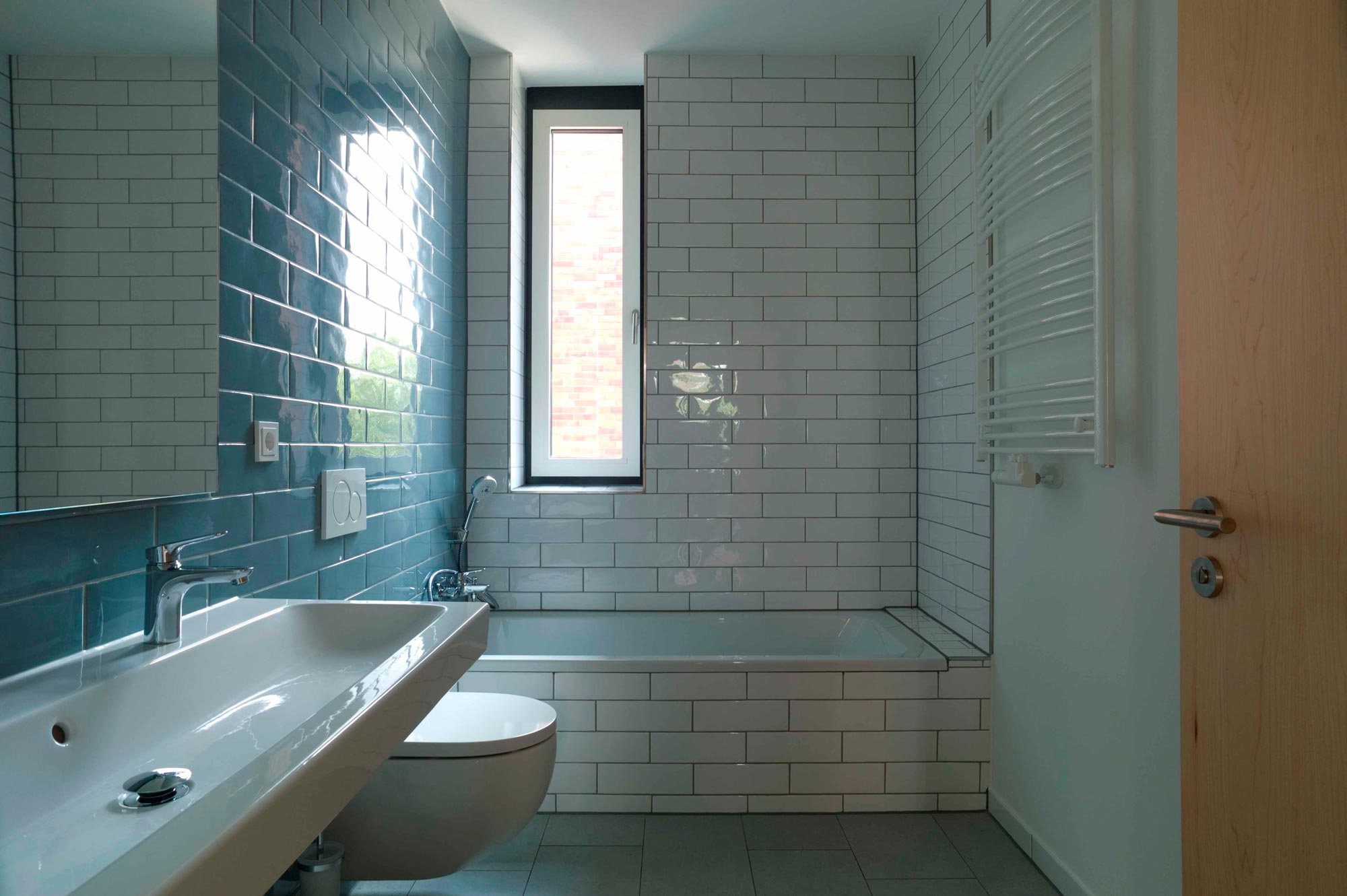 The building itself is divided into three parts: The three upper floors in the northern part of the building and the four upper floors opposite the church end at the level of the neighboring residential buildings. So that the landmark of the Dulsberg Frohbotschaftskirche, the church tower, can act as a visual axis and reference point for the Dulsbergers, the connecting building is single-storey in the middle. The varying facade of the building is scaled according to its use. The facade itself is a terracotta facade made of baked clay, which takes on the brick color of the buildings in the vicinity. On the ground floor of the main entrance facing Straßburger Straße, the building offers more space for a large family café and several course rooms.