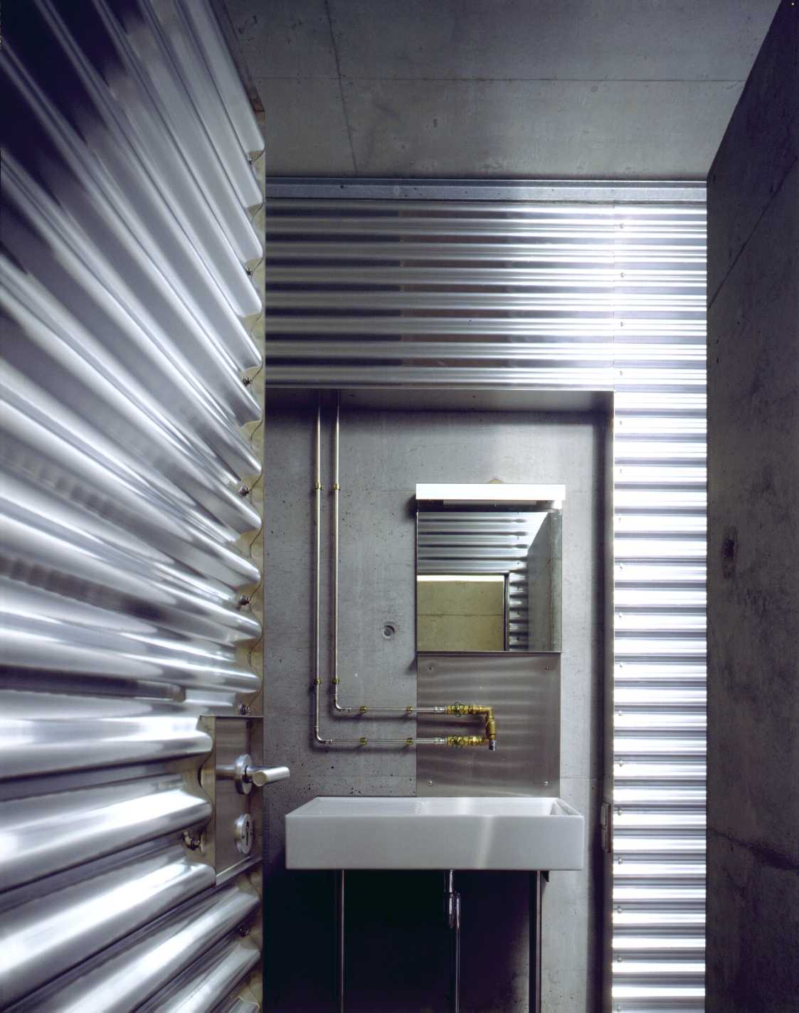 The studio is located upstairs above a parking pallet. The concrete in the interior combines elegance with the steel and glass construction of the facade and the roof with skylight.